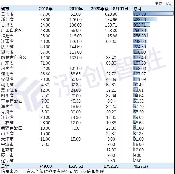 2018至2020年8月31日,全国28个省、自治区、直辖市、计划单列市发行了收费公路专项债券,累计发行规模4027.37亿元,具体情况如下: