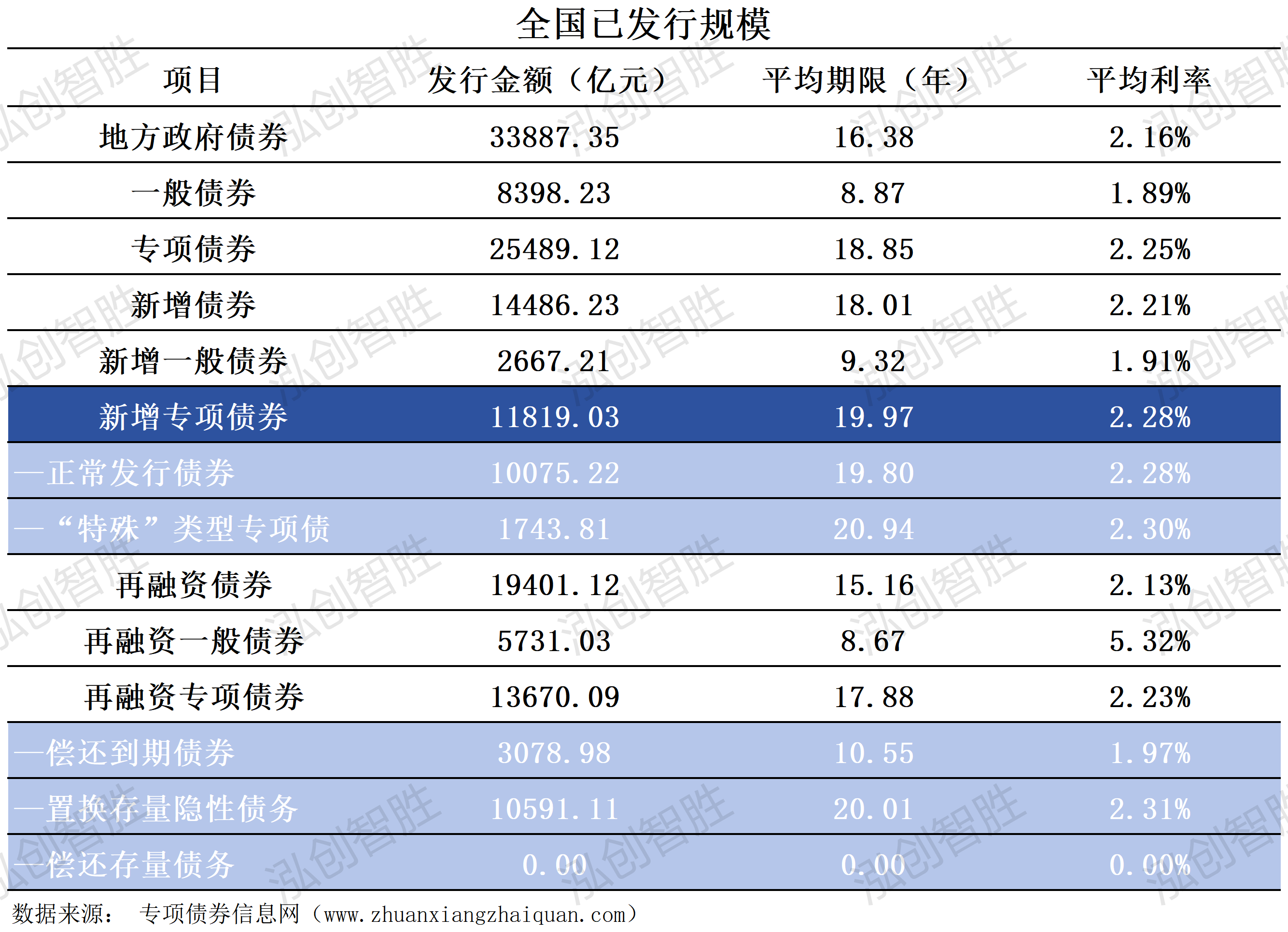 全国发行新增地方政府债券14486.23亿元,其中专项债券11819.03亿元,按全年4.4万亿限额计算,发行进度为26.86%;一般债券2667.21亿元,按全年8000亿限额计算,发行进度为33.34%。