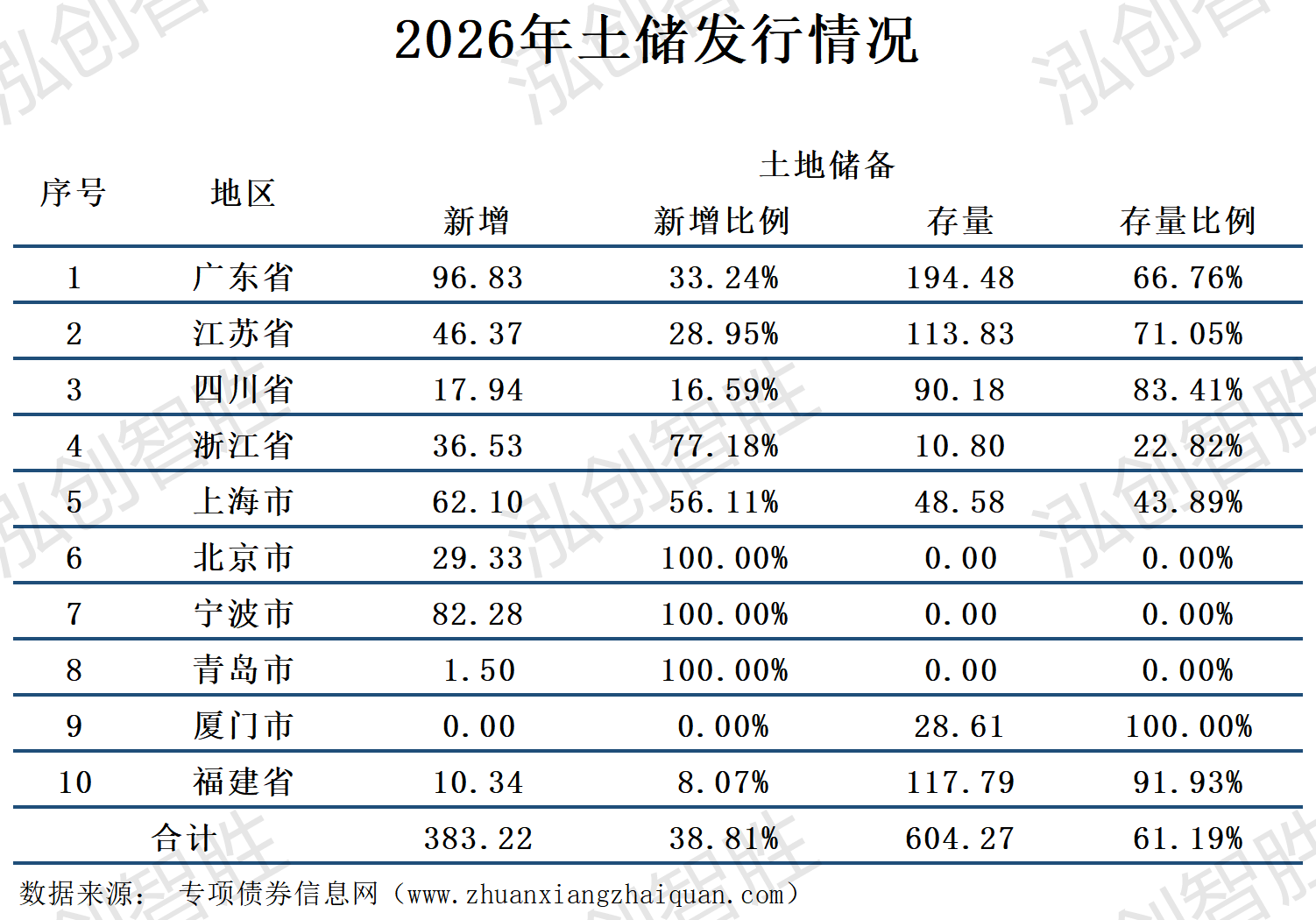 截至4月12日,全国发行土地储备987.49亿元,新增土储项目383.22亿元,回收存量土储项目604.27亿元;