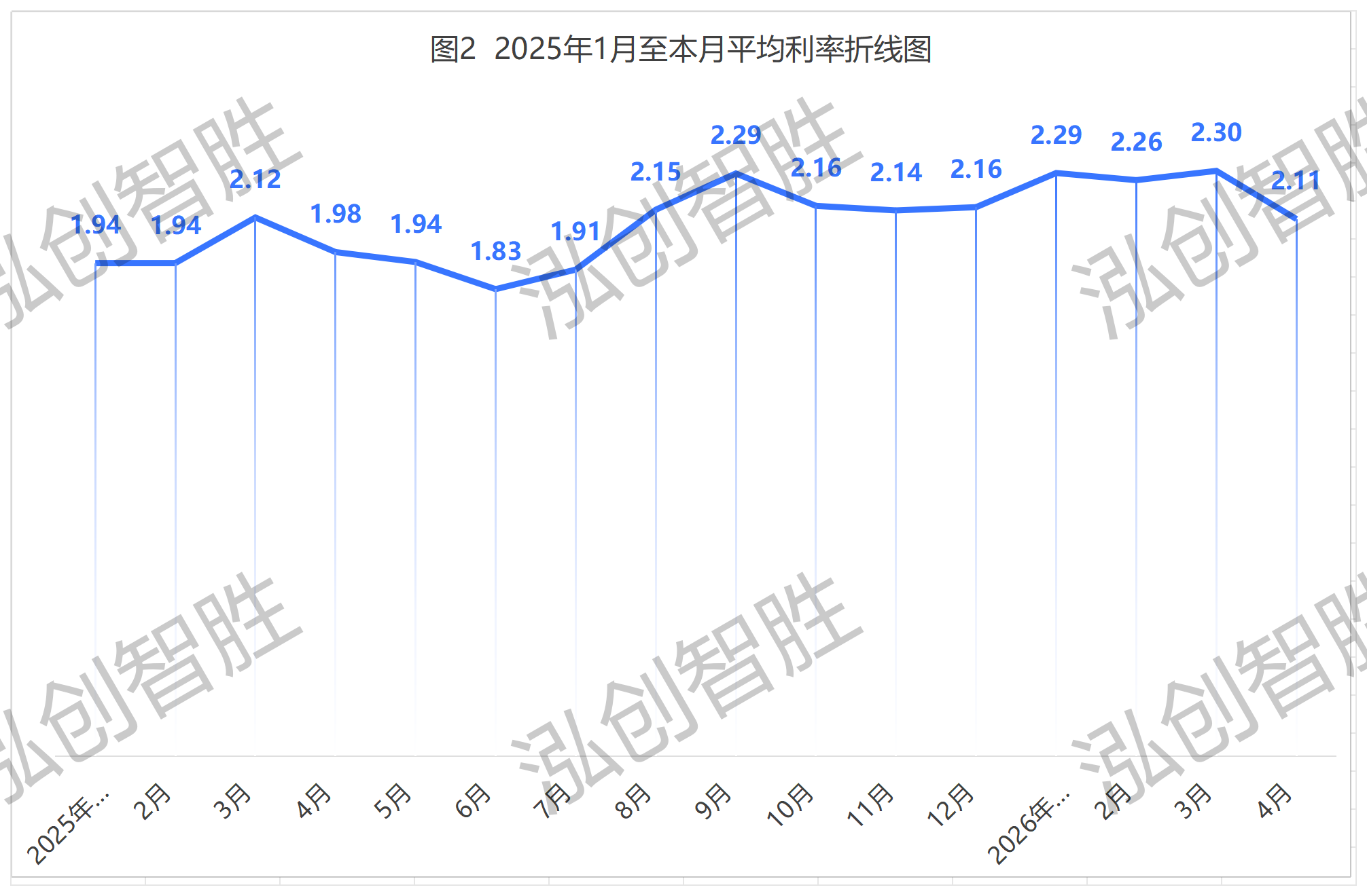 从月平均利率来看,截至目前本月平均利率为2.11%,较2025年4月同比增长0.13个百分点,位于本年度新增专项债券利率最低位置。