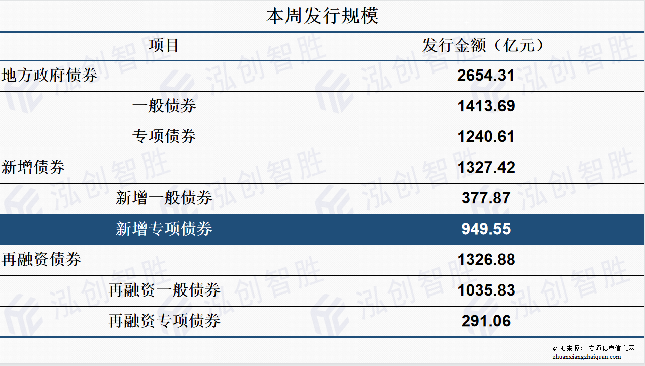 本周地方政府债券发行规模2654.31亿元,其中