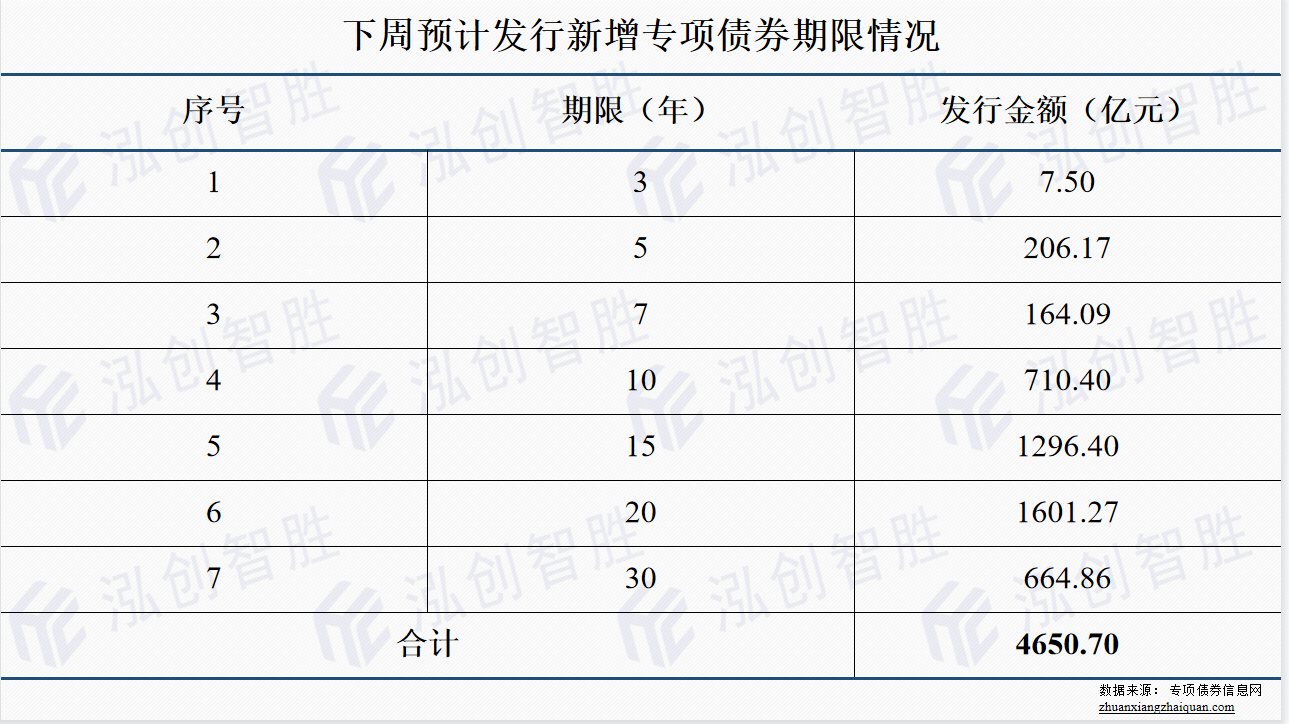 下周预计发行地方政府债券平均期限为15.32年,其中,新增专项债券平均期限为17.36年。