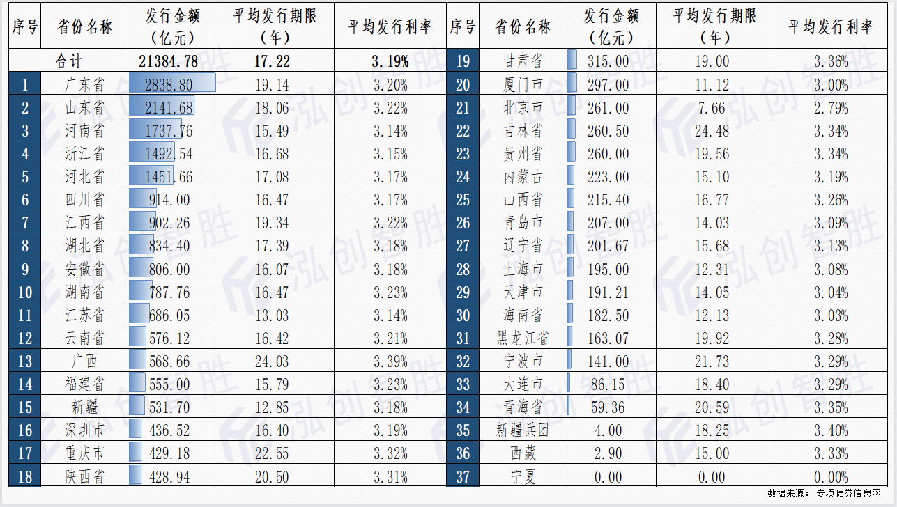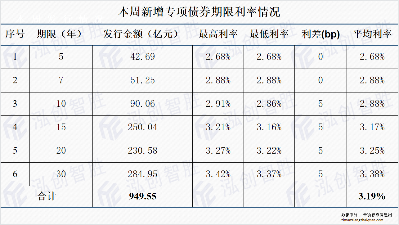 其中,新增专项债券平均发行期限19.36年,平均发行利率3.19%。