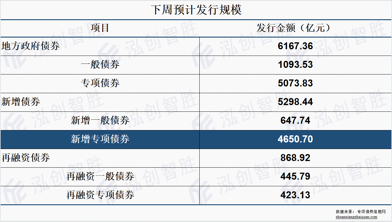 下周地方政府债券预计发行规模6167.36亿元,其中