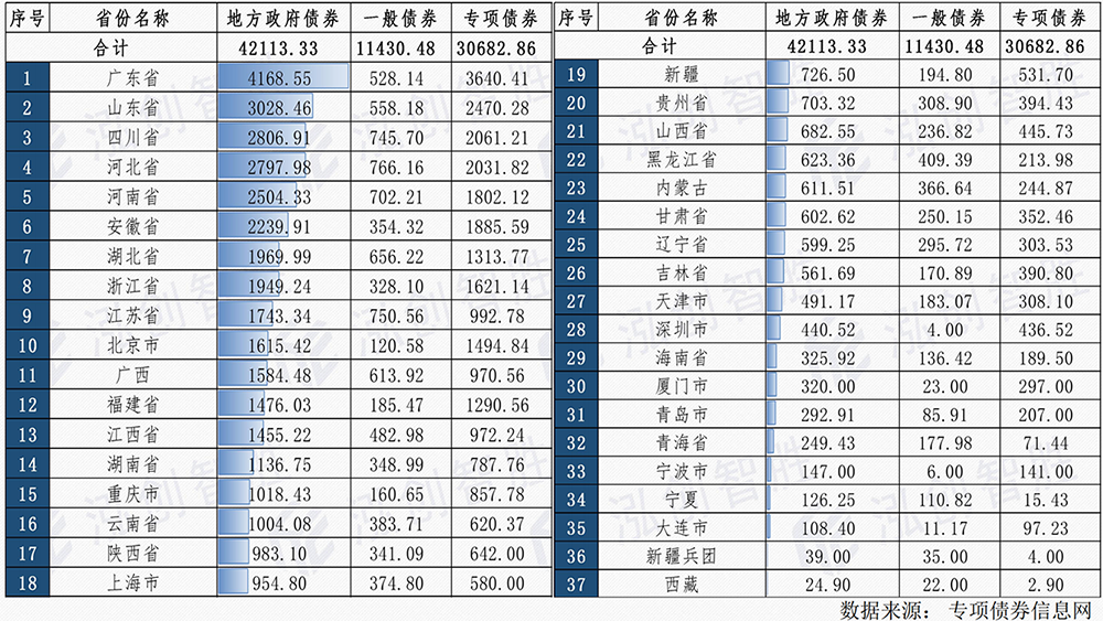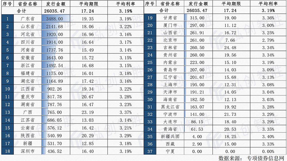 全国各省市新增专项债券发行情况汇总