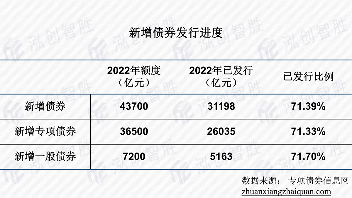 截至6月19日,2022年新增债券已发行71.39%,其中,新增专项债券已发行71.33%,新增一般债券已发行71.70%。
