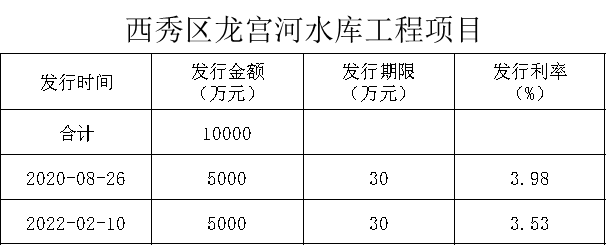 分年度看,该项目2020年发行专项债券5000万元,2022年发行专项债券5000万元。