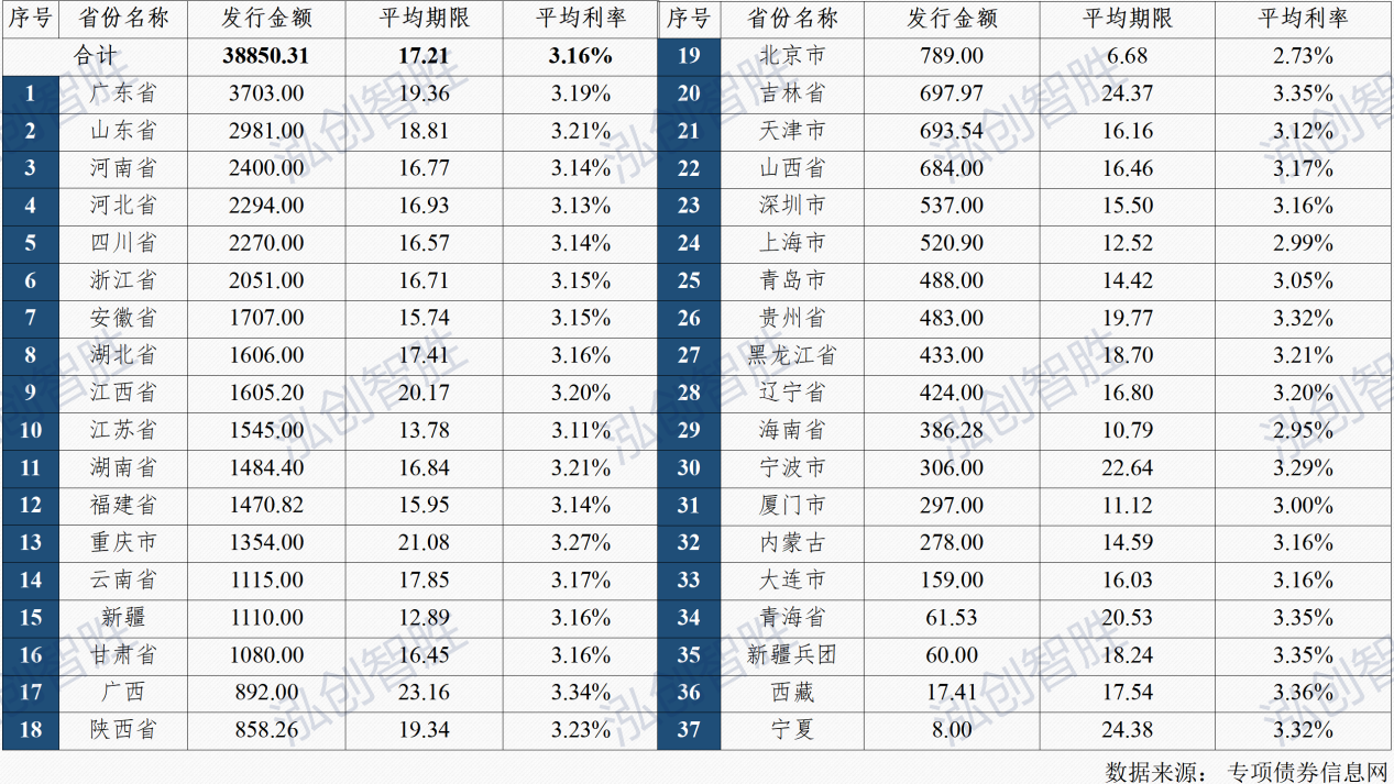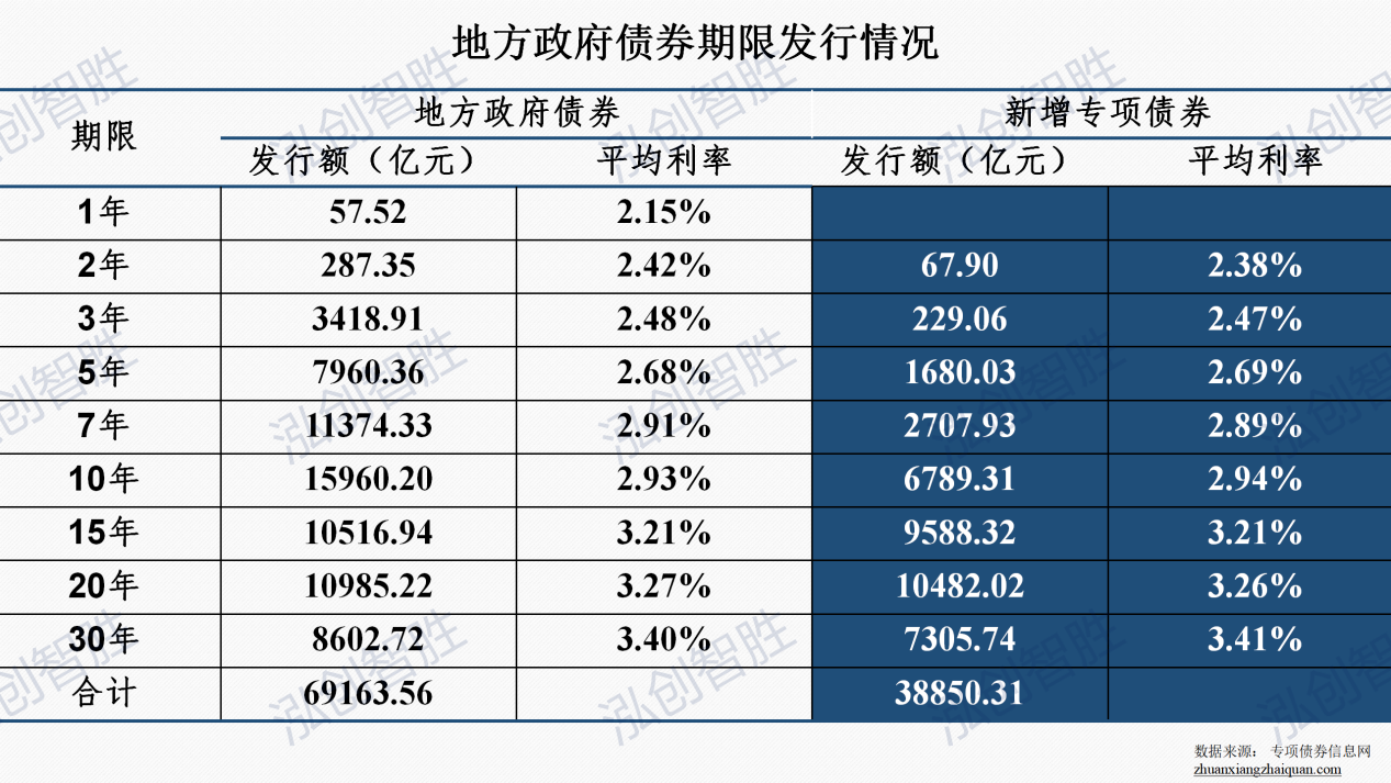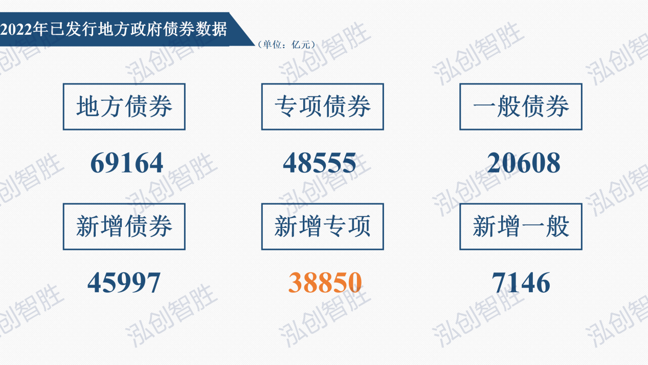 截至10月30日,2022年地方政府债券已发行69163.56亿元,平均期限13.38年,平均利率3.03%。其中,新增专项债券已发行38850.31亿元,平均期限17.21年,平均利率3.16%。