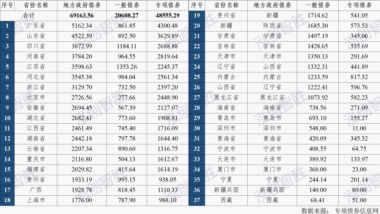 截至10月30日,2022年全国37个发行主体成功发行1963期地方政府债券,已发行规模为69164亿元。其中,专项债券48555亿元,一般债券20608亿元;其中,新增债券45997亿元,再融资债券23167亿元。(37个发行主体发行详情请见附表1、附表2)