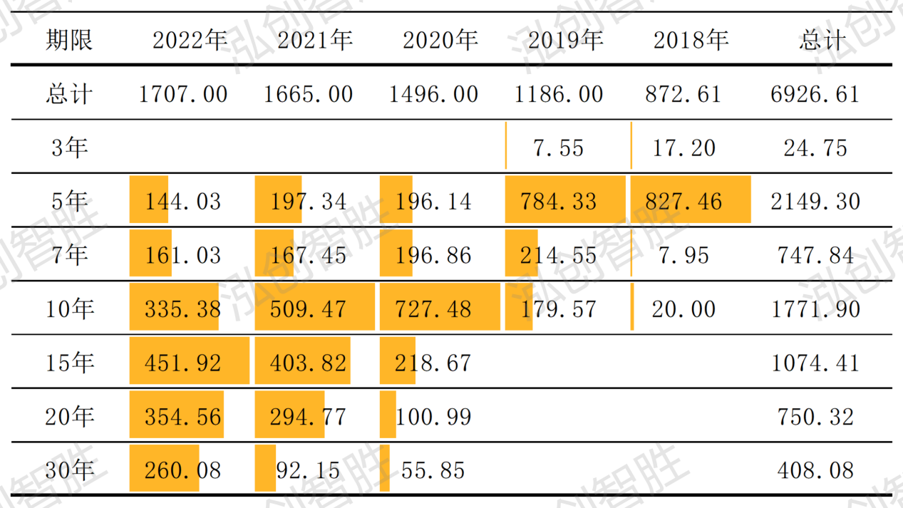 数据来源:专项债券信息网、北京泓创智胜咨询有限公司整理3.2018-2022年各期限发行规模