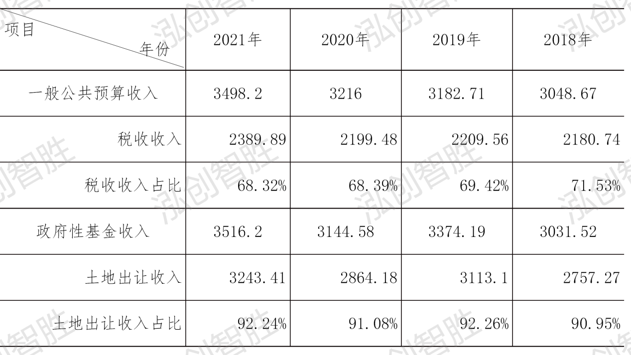 2021年安徽省一般公共预算收入3498.2亿元,其中税收收入占比68.32%,浙江省每年税收收入都在70%左右,税收收入占比稳定但整体较低。2021年安徽省政府性基金收入3516.2亿元,其中土地出让收入占比92.24,安徽省连续多年土地出让收入占比高于90%,整体占比较高。