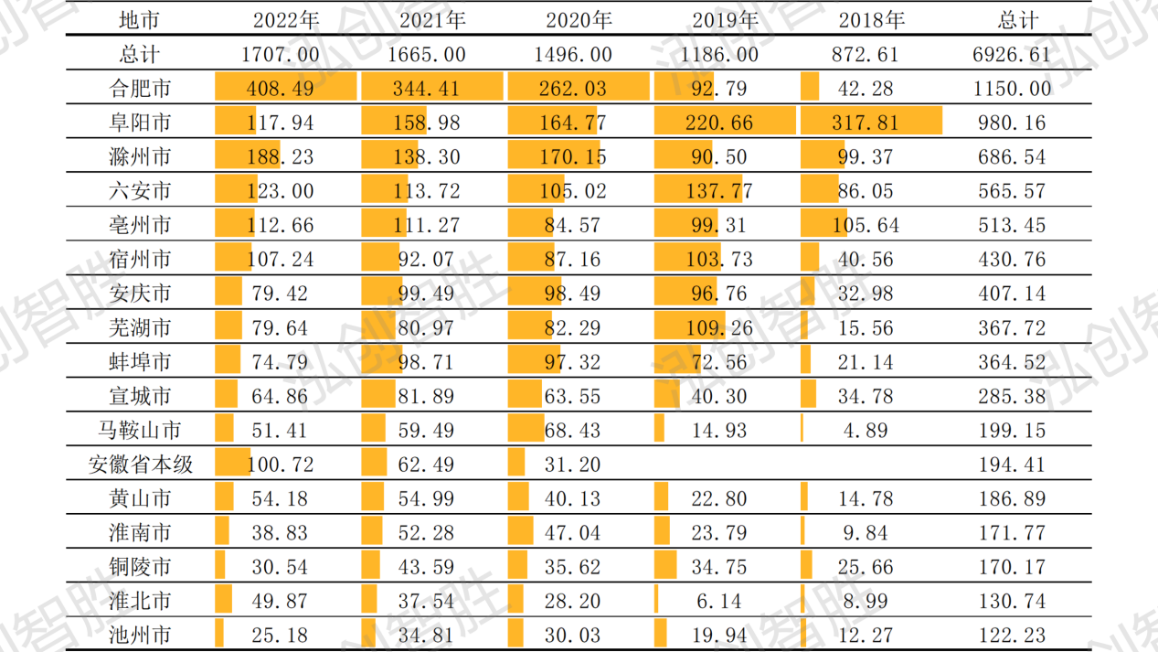安徽省GDP总量全国排名稳居第11位,2018-2022年共计发行6929.61亿元新增专项债券。本文将带领读者了解安徽省新增专项债券详细发行情况。安徽建省于清朝康熙6年(公元1667年),省名取当时安庆、徽州两府首字合成,因境内有皖山、春秋时期有古皖国而简称皖。它位于中国中东部,是最具活力的长江三角洲组成部分。