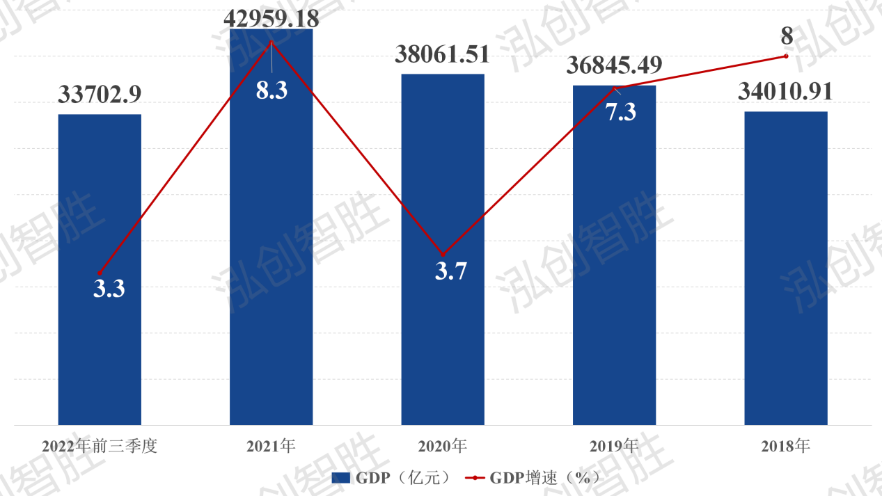 2022年前三季度,全省GDP为33702.9亿元,同比增长3.3%,增速比全国高0.3个百分点。