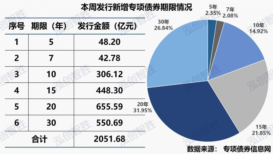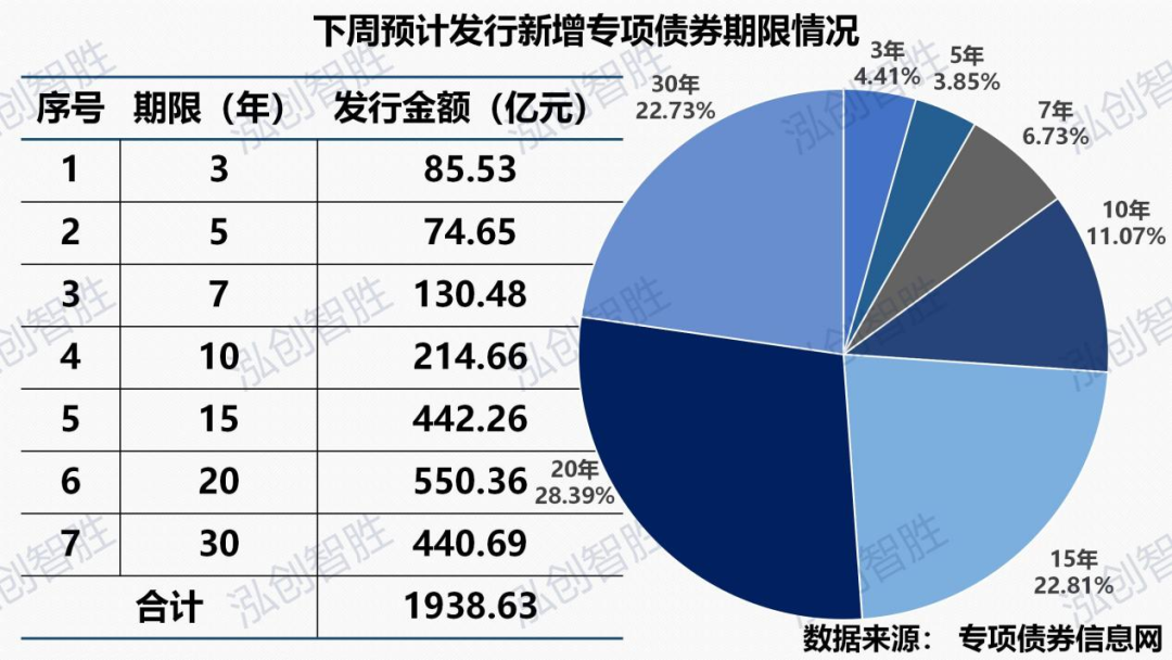下周预计发行地方政府债券平均期限为17.82年,其中新增专项债券平均期限15.33年。