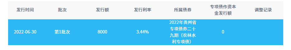 截止2022年06月30日,该项目共发行1批次,累计发行金额8000.00万元。