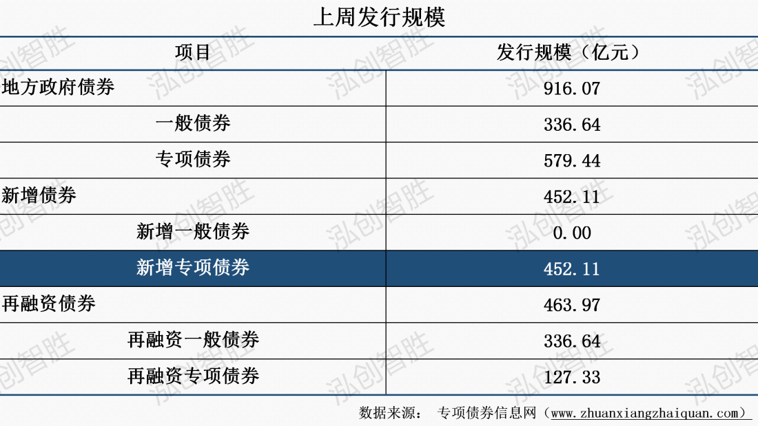 上周地方政府债券发行规模916亿元;