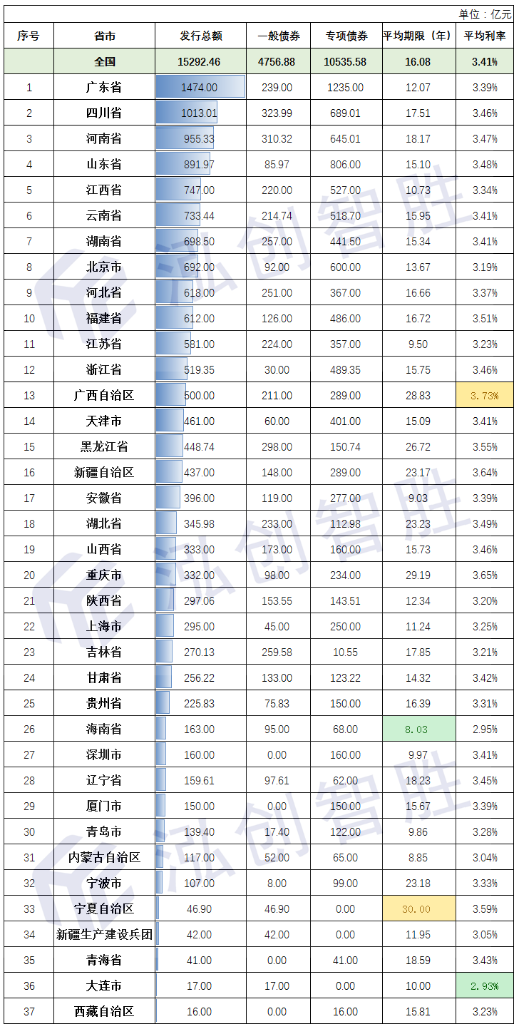 5.全国具备地方政府债券发行资格的37个地区已全部发行了地方政府债券。