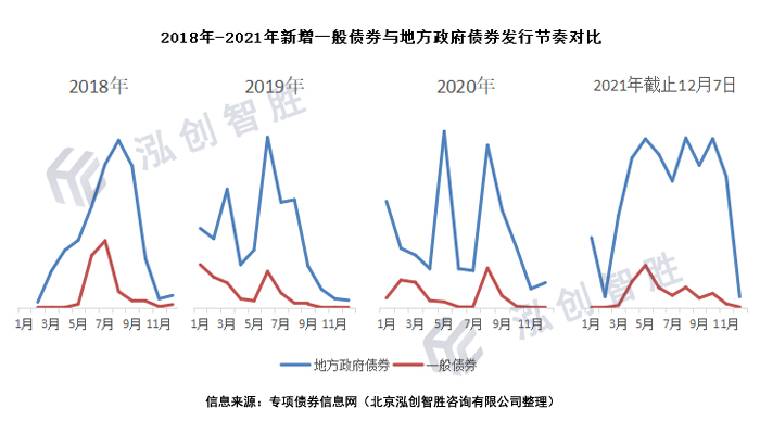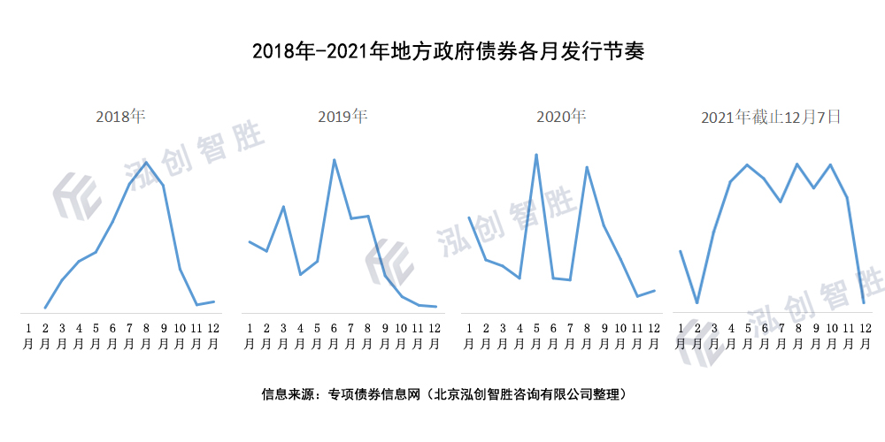 2021年,财政部开始部署跨周期调节,部分地区开始预留额度在12月发行,支持2022年一季度重大项目建设,后经济出现新的下行压力,受政策及经济等影响,财政部要求新增专项债券尽量在11月底前发行完毕;
