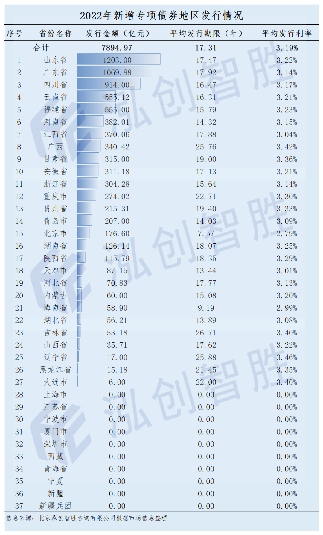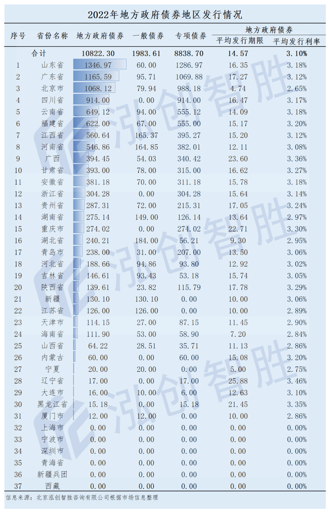 全国各省市地方政府债券发行情况汇总