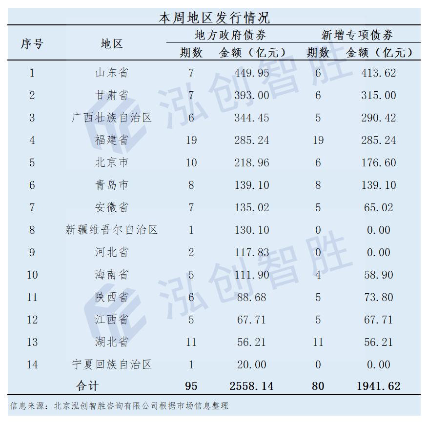 广西发行3期,发行规模为144.25亿元;湖北发行7期,发行规模为30.55亿元。