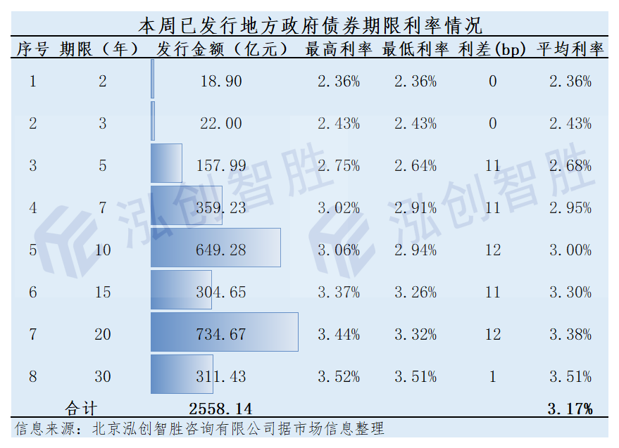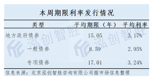 本周地方政府债券发行平均期限15.05年,平均利率3.17%。