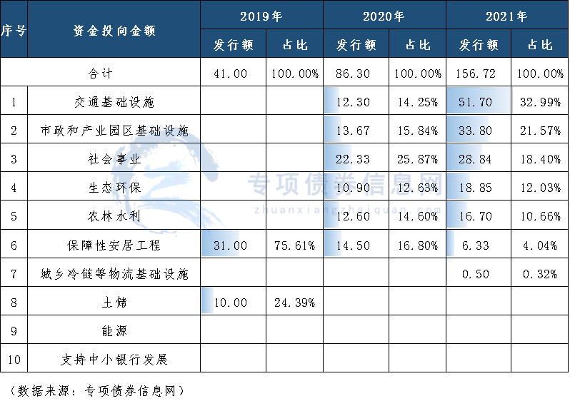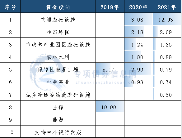 表1:湖州市2019-2021年新增专项债券资金投向规模(亿元)