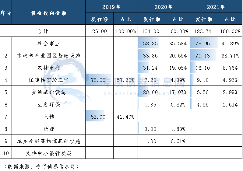 表1:绍兴市2019-2021年新增专项债券资金投向规模(亿)