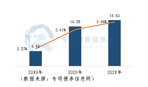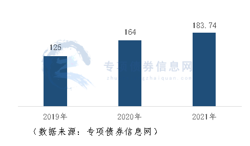 绍兴市2019-2021年新增专项债券累计发行472.74亿元,年均增长率13.70%,其中,2019年发行125亿元,2020年发行164亿元,2021年发行183.74亿元。