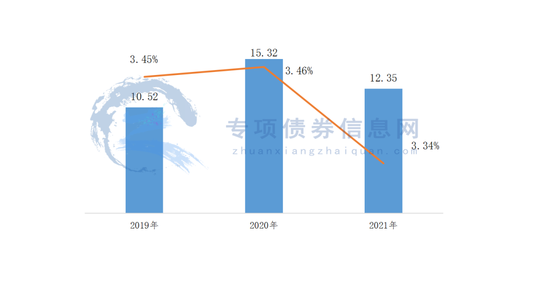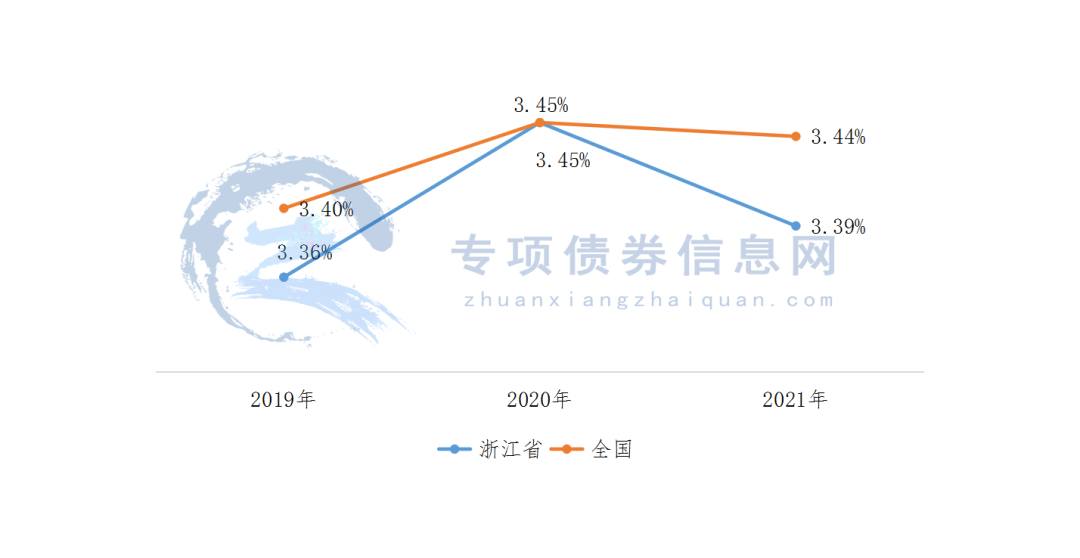 图9:2019-2021年浙江省及全国新增专项债券平均发行利率