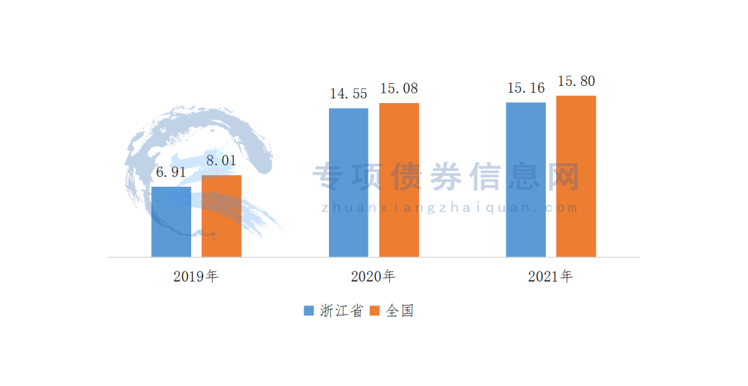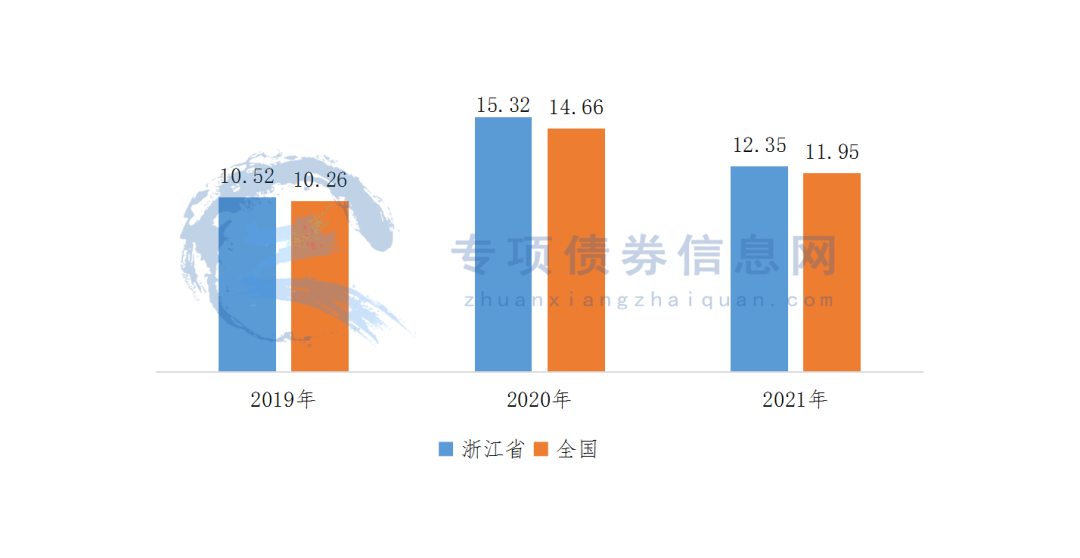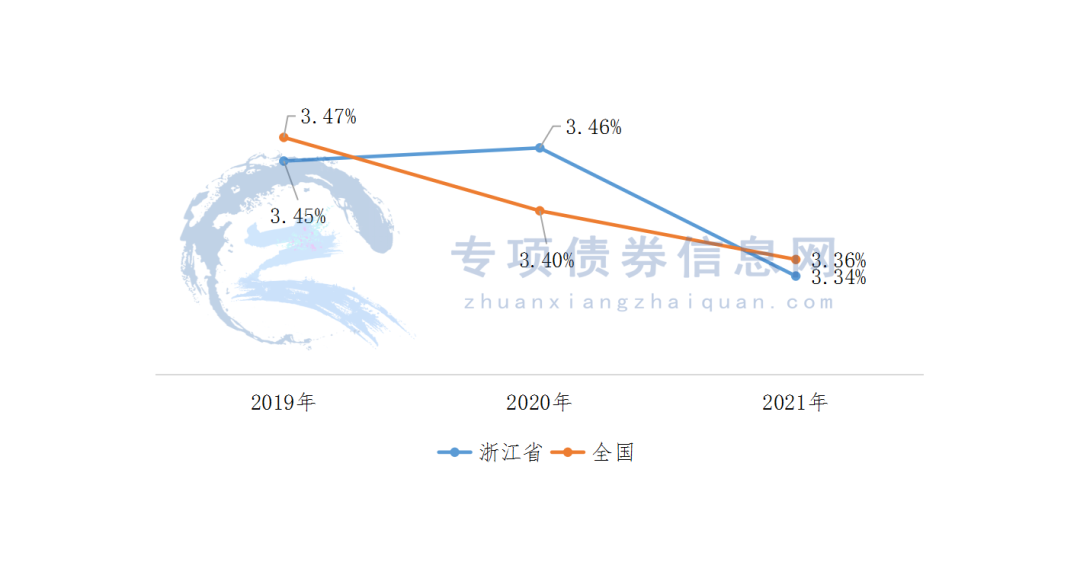 图6:2019-2021年浙江省及全国地方政府债券平均发行利率