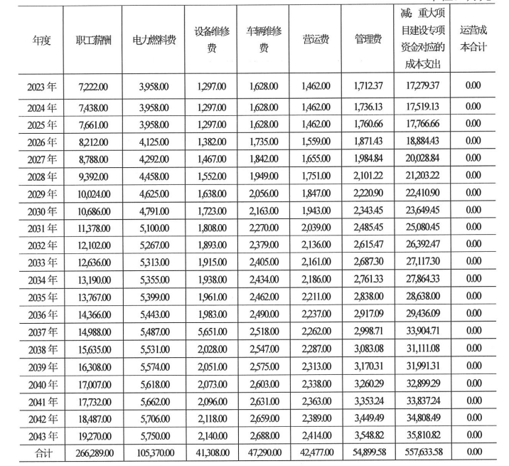 本项目的运营成本主要包经营成本、固定资产折旧及费用摊销、财务费用等;经营成本包括:职工薪酬、电力燃烧费、设备维修费、车辆维修费、运营费、管理费等。债券存续期内(2022年-2032年)运营成本由重大项目建设专项资金安排,运营期内重大项目建设专项资金弥补合计557, 633. 58万元。