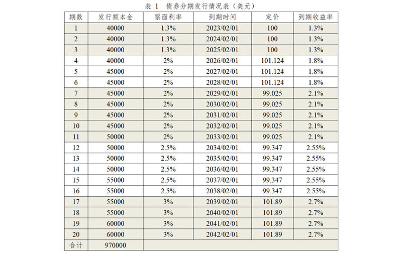 表 1 债券分期发行情况表(美元)