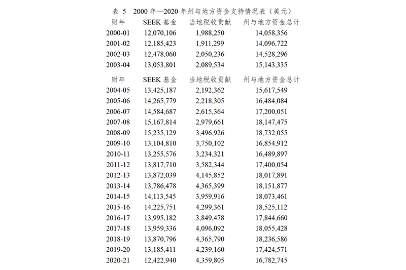 表 5 2000年—2020年州与地方资金支持情况表(美元)